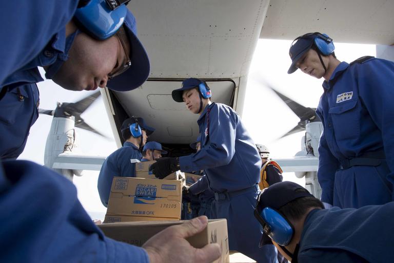 MAKE A MEME View Large Image Japan Maritime Self Defense Force personnel load supplies onto a U.S. Marine Corps MV-22B Osprey tiltrotor aircraft assigned to Marine Medium Tiltrotor Squadron (VMM) 265 (Reinforced), 31st Marine Expeditionary Unit (MEU), aboard the JS ...