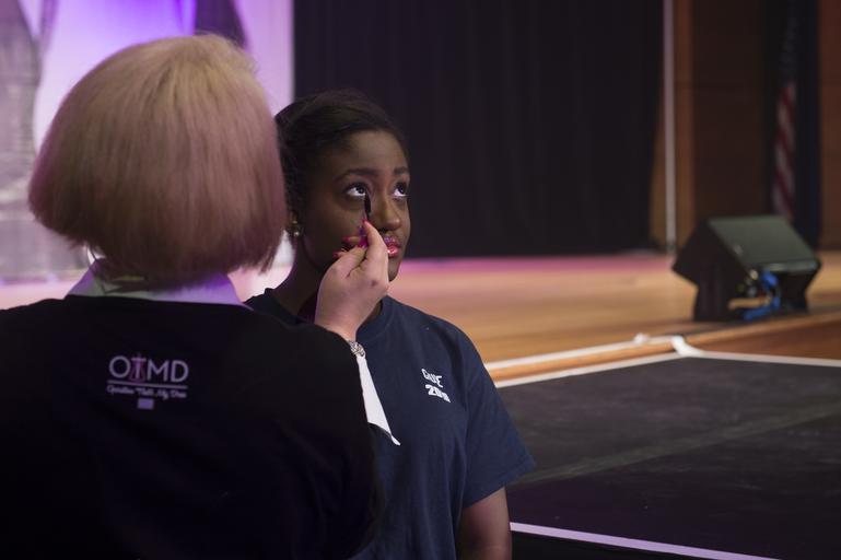 Keywords: select people indoor NEW LONDON, Conn. -- The USO present Operation That's My Dress at the U.S. Coast Guard Academy April 23, 2016. The event includes a fashion show with models showcasing evening and formal wear by world class designers and entertainment by the USO Show Troupe. The USO then provides thousands of new gowns and dresses to female service members and spouses from international fashion designer Sherri Hill, among other notable designers in the fashion world. U.S. Coast Guard photo by Petty Officer 2nd Class Cory J. Mendenhall. NEW LONDON, Conn. -- The USO present Operation That's My Dress at the U.S. Coast Guard Academy April 23, 2016. The event includes a fashion show with models showcasing evening and formal wear by world class designers and entertainment by the USO Show Troupe. The USO then provides thousands of new gowns and dresses to female service members and spouses from international fashion designer Sherri Hill, among other notable designers in the fashion world. U.S. Coast Guard photo by Petty Officer 2nd Class Cory J. Mendenhall.