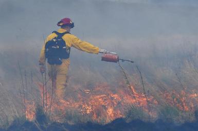 Keywords: firefighter controlled burns controlledburns 673rd civil engineer squadron 673rdcivilengineersquadron joint base elmendorf-richardson jointbaseelmendorfrichardson alaska usa us outdoor U.S. Air Force Staff Sgt. Daniel Easterlund, a fire protection specialist assigned to the 673rd Civil Engineer Squadron, uses a drip torch to light a back fire during a controlled burn at Grezelka range on Joint Base Elmendorf-Richardson, Alaska, May 2, 2016. According to the National Oceanic and Atmospheric Administration, last winter in Alaska was the second warmest on record dating back to 1925. Combined with record-low snowfall and precipitation, the chance of fire activity greatly increases as combustible dry detritus accumulates. Controlled burns reduce the chance of spot fires by removing excess dry brush and grass. (U.S. Air Force photo/Alejandro Pena) U.S. Air Force Staff Sgt. Daniel Easterlund, a fire protection specialist assigned to the 673rd Civil Engineer Squadron, uses a drip torch to light a back fire during a controlled burn at Grezelka range on Joint Base Elmendorf-Richardson, Alaska, May 2, 2016. According to the National Oceanic and Atmospheric Administration, last winter in Alaska was the second warmest on record dating back to 1925. Combined with record-low snowfall and precipitation, the chance of fire activity greatly increases as combustible dry detritus accumulates. Controlled burns reduce the chance of spot fires by removing excess dry brush and grass. (U.S. Air Force photo/Alejandro Pena) |