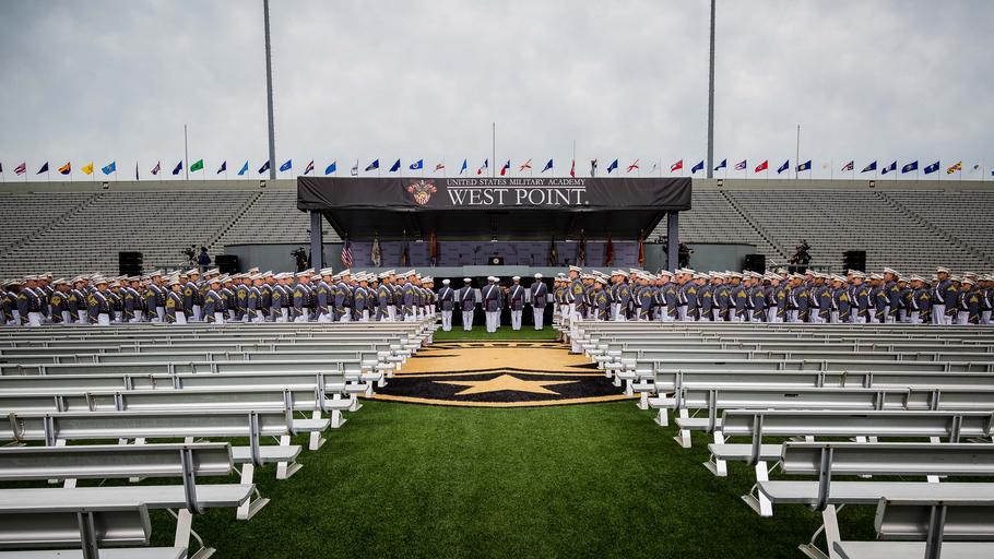 | Keywords: stadium sport auditorium room The U.S. Military Academy Class of 2016 graduated and commissioned as second lieutenants into the U.S. Army May 21 in front of a packed-crowd at Michie Stadium. Nine hundred and fifty-three cadets graduated, which represented approximately 78 percent of the cadets who entered West Point in the summer of 2012. Vice President Joe Biden was the graduation speaker. This is the 218th graduating class of West Point. This class included 151 women, 77 Hispanics, 71 Asian/Pacific Islanders, 69 African-Americans and 12 Native Americans. The class also had 25 combat veterans (24 male, one female). (U.S. Army photo by: Staff Sgt. Vito T. Bryant) The U.S. Military Academy Class of 2016 graduated and commissioned as second lieutenants into the U.S. Army May 21 in front of a packed-crowd at Michie Stadium. Nine hundred and fifty-three cadets graduated, which represented approximately 78 percent of the cadets who entered West Point in the summer of 2012. Vice President Joe Biden was the graduation speaker. This is the 218th graduating class of West Point. This class included 151 women, 77 Hispanics, 71 Asian/Pacific Islanders, 69 African-Americans and 12 Native Americans. The class also had 25 combat veterans (24 male, one female). (U.S. Army photo by: Staff Sgt. Vito T. Bryant) |