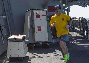 Keywords: 160530-N-GP524-051 160530-N-GP524-051.jpg en 160530-N-GP524-051 MEDITERRANEAN SEA May 30 2016 USS Stout DDG 55 Command Master Chief Ron Glass runs during the Memorial Day MURPH Challenge honoring the fallen Lt Michael Murphy through physical fitness while transiting the Mediterranean Sea May 30 2016 Stout an Arleigh Burke-class guided-missile destroyer deployed as part of the Eisenhower Carrier Strike Group is conducting naval operations in the U S 6th Fleet area of operations in support of U S national security interests in Europe U S Navy photo by Mass Communication Specialist 3rd Class Bill Dodge/Released Unit Navy Media Content Services DVIDS Tags 6th Fleet; Navy; Sailor; U S Navy; 5th Fleet; deployment; NMCS; DVIDS Bulk Import; USS S 2016-05-30 Petty Officer 3rd Class William Dodge https //www dvidshub net/image/2631464/160530-n-gp524-051 160530-N-GP524-051 2016-06-03 00 01 ATLANTIC OCEAN PD-USGov-Military-Navy USS Stout DDG-55 Images from DoD uploaded by Fæ