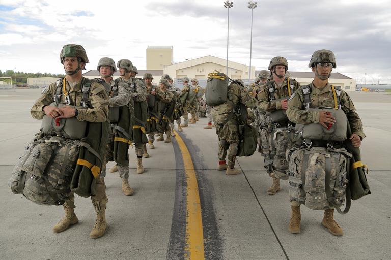 Keywords: arctic aurora 2016 arcticaurora2016 airborne 4th infantry brigade combat team (airborne) 4thinfantrybrigadecombatteamairborne 25th infantry division 25thinfantrydivision kc-130j super hercules kc130jsuperhercules japanese ground self defense force japanesegroundselfdefenseforce joint base elmendorf-richardson jointbaseelmendorfrichardson alaska usa us people outdoor Paratroopers assigned to the 3rd Battalion, 509th Parachute Infantry Regiment, wait to board a KC-130J Super Hercules while conducting airborne operations during Arctic Aurora 2016 at Joint Base Elmendorf-Richardson, Alaska, June 2, 2016. Arctic Aurora 2016 is a yearly bilateral training exercise, involving elements of the 4th Infantry Brigade Combat Team (Airborne), 25th Infantry Division and the Japanese Ground Self Defense Force, that promotes interoperability by conducting combined small unit airborne proficiency operations and basic small arms marksmanship. (U.S. Air Force photo/Alejandro Pena) Paratroopers assigned to the 3rd Battalion, 509th Parachute Infantry Regiment, wait to board a KC-130J Super Hercules while conducting airborne operations during Arctic Aurora 2016 at Joint Base Elmendorf-Richardson, Alaska, June 2, 2016. Arctic Aurora 2016 is a yearly bilateral training exercise, involving elements of the 4th Infantry Brigade Combat Team (Airborne), 25th Infantry Division and the Japanese Ground Self Defense Force, that promotes interoperability by conducting combined small unit airborne proficiency operations and basic small arms marksmanship. (U.S. Air Force photo/Alejandro Pena)