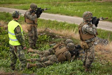 | Keywords: 2016 baltops2016 baltic sea balticsea expeditionary mine counter measures expeditionaryminecountermeasures navy reservists navyreservists sweden swedish marines swedishmarines us marines usmarines us navy usnavy us navy reservists usnavyreservists uto live-fire livefire outdoor photo border 160610-N-PF515-011 UTO, Sweden (June 10, 2016) U.S. Marines with 3rd Battalion, 8th Marines deployed from Camp Lejeune, North Carolina, perform a live-fire exercise while a Swedish safety range officer observes during BALTOPS 2016 in Uto, Sweden, June 10. BALTOPS is an annual recurring multinational exercise designed to improve interoperability, enhance flexibility, and demonstrate the resolve of allied and partner nations to defend the Baltic region. (U.S. Navy photo by Mass Communication Specialist 1st Class America A. Henry/ Released) 160610-N-PF515-011 UTO, Sweden (June 10, 2016) U.S. Marines with 3rd Battalion, 8th Marines deployed from Camp Lejeune, North Carolina, perform a live-fire exercise while a Swedish safety range officer observes during BALTOPS 2016 in Uto, Sweden, June 10. BALTOPS is an annual recurring multinational exercise designed to improve interoperability, enhance flexibility, and demonstrate the resolve of allied and partner nations to defend the Baltic region. (U.S. Navy photo by Mass Communication Specialist 1st Class America A. Henry/ Released) |