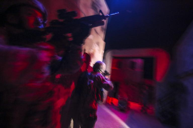| Keywords: usaf u.s. air force usairforce air national guard airnationalguard new jersey newjersey 177th security forces squadron 177thsecurityforcessquadron m4 training joint base mcguire-dix-lakehurst jointbasemcguiredixlakehurst jt2dc n.j. nj usa public domain publicdomain free U.S. Air Force Airmen from the New Jersey Air National Guard's 177th Security Forces Squadron maneuver through an indoor Military Operations in Urban Terrain (MOUT) site during training at the New Jersey National Guard's Joint Training & Training Development Center (JT2DC), Joint Base McGuire-Dix-Lakehurst, N.J., June 16, 2016. The 177th Security Forces Squadron was utilizing the ability for the JT2DC's training areas to simulate low-light conditions in an urban environment. The red and blue lighting simulates a moonlit night as seen through night vision devices. (U.S. Air National Guard photo by Tech. Sgt. Matt Hecht/Released) U.S. Air Force Airmen from the New Jersey Air National Guard's 177th Security Forces Squadron maneuver through an indoor Military Operations in Urban Terrain (MOUT) site during training at the New Jersey National Guard's Joint Training & Training Development Center (JT2DC), Joint Base McGuire-Dix-Lakehurst, N.J., June 16, 2016. The 177th Security Forces Squadron was utilizing the ability for the JT2DC's training areas to simulate low-light conditions in an urban environment. The red and blue lighting simulates a moonlit night as seen through night vision devices. (U.S. Air National Guard photo by Tech. Sgt. Matt Hecht/Released) |