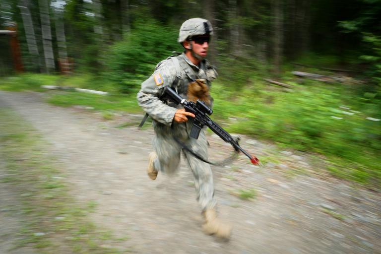 Keywords: soldiers; army; u.s. army; u.s. army alaska; usarpac; u.s. army soldiersarmyusarmyusarmyalaskausarpacusarmy joint base elmendorf-richardson jointbaseelmendorfrichardson alaska usa soldiers; army; u.s. army; u.s. army alaska; usarpac; u.s. army pacific; ready warrior; competition; small unit; leadership; testing; training soldiersarmyusarmyusarmyalaskausarpacusarmypacificreadywarriorcompetitionsmallunitleadershiptestingtraining outdoor sport riding bike vehicle A soldier assigned to the 17th Combat Sustainment Support Battalion, U.S. Army Alaska, rushes forward toward an objective on a Situation Exercise Training lane during the Ready Warrior Competition at Camp Madbull on Joint Base Elmendorf-Richardson, Alaska, Thursday, June 23, 2016. The three-day competition tested teams of Soldiers in physical fitness, small arms proficiency, land navigation, and small-unit tactics as well as other Soldier skills. (U.S. Air Force photo/Justin Connaher) A soldier assigned to the 17th Combat Sustainment Support Battalion, U.S. Army Alaska, rushes forward toward an objective on a Situation Exercise Training lane during the Ready Warrior Competition at Camp Madbull on Joint Base Elmendorf-Richardson, Alaska, Thursday, June 23, 2016. The three-day competition tested teams of Soldiers in physical fitness, small arms proficiency, land navigation, and small-unit tactics as well as other Soldier skills. (U.S. Air Force photo/Justin Connaher) |
