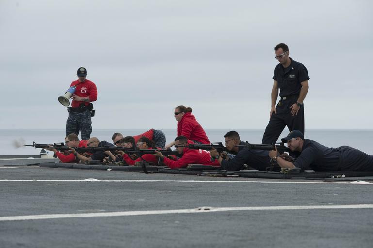 | Keywords: navy lcc 20 lcc20 mount whitney mountwhitney gun shoot gunshoot m16 ship outdoor 160724-N-KP948-238 ATLANTIC OCEAN (July 24, 2016) - Sailors aboard USS Mount Whitney (LCC 20) fire M16 rifles during a small-arms weapons qualifications course July 24, 2016. Mount Whitney, the U.S. 6th Fleet command and control ship, forward deployed to Gaeta, Italy, operates with a combined crew of U.S. Navy Sailors and Military Sealift Command civil service mariners. (U.S. Navy Photo by Mass Communication Specialist Seaman Alyssa Weeks/Released) 160724-N-KP948-238 ATLANTIC OCEAN (July 24, 2016) - Sailors aboard USS Mount Whitney (LCC 20) fire M16 rifles during a small-arms weapons qualifications course July 24, 2016. Mount Whitney, the U.S. 6th Fleet command and control ship, forward deployed to Gaeta, Italy, operates with a combined crew of U.S. Navy Sailors and Military Sealift Command civil service mariners. (U.S. Navy Photo by Mass Communication Specialist Seaman Alyssa Weeks/Released) |