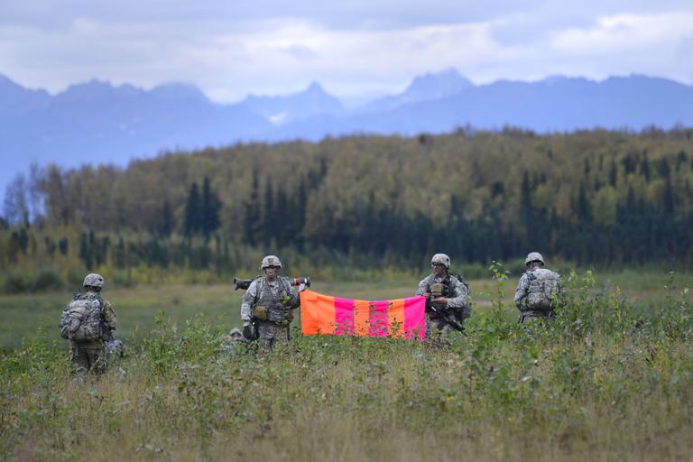 | Keywords: outdoor Paratroopers assigned to the 1st Battalion, 501st Parachute Infantry Regiment, 4th Infantry Brigade Combat Team (Airborne), 25th Infantry Division, U.S. Army Alaska, participate in a joint forcible entry exercise at Malemute Drop Zone on Joint Base Elmendorf-Richardson, Alaska, Aug. 23, 2016, as part of Exercise Spartan Agoge. Spartan Agoge is a brigade-level field training exercise that began Aug. 15, and focuses on an array of combat-related tasks from squad live-fire exercises to helicopter air insertion and airborne assault training. (U.S. Air Force photo by Airman 1st Class Valerie Monroy) Paratroopers assigned to the 1st Battalion, 501st Parachute Infantry Regiment, 4th Infantry Brigade Combat Team (Airborne), 25th Infantry Division, U.S. Army Alaska, participate in a joint forcible entry exercise at Malemute Drop Zone on Joint Base Elmendorf-Richardson, Alaska, Aug. 23, 2016, as part of Exercise Spartan Agoge. Spartan Agoge is a brigade-level field training exercise that began Aug. 15, and focuses on an array of combat-related tasks from squad live-fire exercises to helicopter air insertion and airborne assault training. (U.S. Air Force photo by Airman 1st Class Valerie Monroy) |