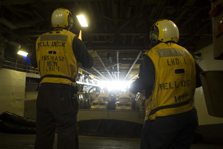 Keywords: 22nd marine expeditionary unit 22ndmarineexpeditionaryunit 22nd meu 22ndmeu 22nd meu comcam 22ndmeucomcam uss wasp usswasp usmc comcam usmccomcam mediterranean sea mediterraneansea united states unitedstates 160905-M-MK246-006 MEDITERRANEAN SEA (Sept. 5, 2016) U.S. Navy Sailors aboard the amphibious assault ship USS Wasp (LHD-1) prepare to direct landing craft, air cushion (LCAC) in the well deck of the Wasp Sept. 5, 2016. The 22nd MEU, deployed with the Wasp Amphibious Ready Group, is conducting naval operations in support of U.S. national security interests in Europe and Africa. (U.S. Marine Corps photo by Cpl. John A. Hamilton Jr.) 160905-M-MK246-006 MEDITERRANEAN SEA (Sept. 5, 2016) U.S. Navy Sailors aboard the amphibious assault ship USS Wasp (LHD-1) prepare to direct landing craft, air cushion (LCAC) in the well deck of the Wasp Sept. 5, 2016. The 22nd MEU, deployed with the Wasp Amphibious Ready Group, is conducting naval operations in support of U.S. national security interests in Europe and Africa. (U.S. Marine Corps photo by Cpl. John A. Hamilton Jr.) |
