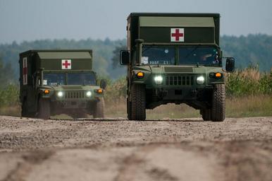 MAKE A MEME View Large Image Ukrainian Soldier drives a new field litter ambulance through the driving range at Yavoriv Training Area, Ukraine on Sep 8, 2016. A team of medics and a mechanic from 557th Medical Company (Area Support) and 212th CSH are working together ...