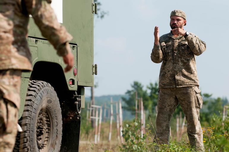 MAKE A MEME View Large Image Ukrainian Soldier uses hand signals during a ground guide exercise of field litter ambulance familiarization on the driving range at Yavoriv Training Area, Ukraine on Sep. 9, 2016. A team of medics and a mechanic from 557th Medical Company ...