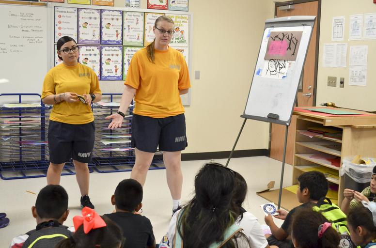 | Keywords: 161018-N-IR859-347 161018-N-IR859-347.jpg en 161018-N-IR859-347 HOUSTON Oct 18 2016 Petty Officer 1st Class Cynthia Martens right and Seaman Jade Alvarado from USS George H W Bush CVN 77 talk to children about Navy life at the Housman Boys and Girls Club in Houston Texas during Navy Week Navy Weeks coordinated by the Navy Office of Community Outreach NAVCO are designed to give Americans the opportunity to learn about the Navy its people and its importance to national security and prosperity U S Navy photo by Chief Jen Blake/Released <br>Unit Navy Media Content Services 2016-10-18 Jennifer Blake https //www dvidshub net/image/2944677/161018-n-ir859-347 161018-N-IR859-347 2016-10-26 00 49 PD-USGov-Military-Navy USS George H W Bush CVN-77 Images from DoD uploaded by Fæ |