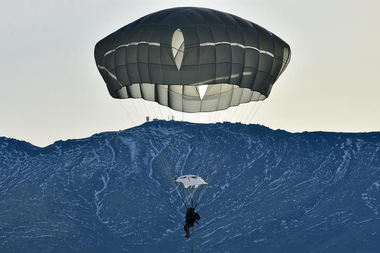 Keywords: paratroopers; training; alaska; jber; joint base elmendorf-richardson; u.s. army alaska; norcom; northern command; airborne paratrooperstrainingalaskajberjointbaseelmendorfrichardsonusarmyalaskanorcomnortherncommandairborne A U.S. Army paratrooper assigned to the 4th Infantry Brigade Combat Team (Airborne), 25th Infantry Division, U.S. Army Alaska, prepares to land during an airborne training jump from a CH-47 Chinook helicopter on Malemute drop zone at Joint Base Elmendorf-Richardson, Alaska, Thursday, Nov. 3, 2016. The Soldiers of 4/25 IBCT belong to the only American airborne brigade in the Pacific and are trained to execute airborne maneuvers in extreme cold weather/high altitude environments in support of combat, partnership and disaster relief operations. (U.S. Air Force photo/Justin Connaher) A U.S. Army paratrooper assigned to the 4th Infantry Brigade Combat Team (Airborne), 25th Infantry Division, U.S. Army Alaska, prepares to land during an airborne training jump from a CH-47 Chinook helicopter on Malemute drop zone at Joint Base Elmendorf-Richardson, Alaska, Thursday, Nov. 3, 2016. The Soldiers of 4/25 IBCT belong to the only American airborne brigade in the Pacific and are trained to execute airborne maneuvers in extreme cold weather/high altitude environments in support of combat, partnership and disaster relief operations. (U.S. Air Force photo/Justin Connaher) |