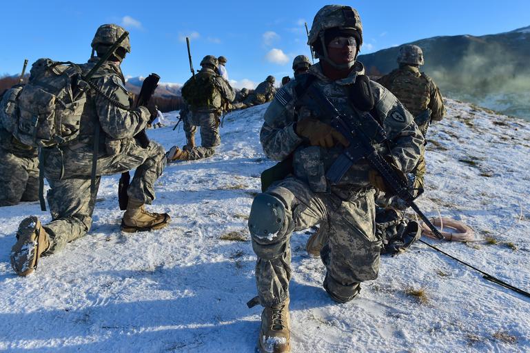 | Keywords: paratroopers; training; alaska; jber; joint base elmendorf-richa paratrooperstrainingalaskajberjointbaseelmendorfricha paratroopers; training; alaska; jber; joint base elmendorf-richardson; live fire; u.s. army alaska; norcom; northern command; airborne paratrooperstrainingalaskajberjointbaseelmendorfrichardsonlivefireusarmyalaskanorcomnortherncommandairborne outdoor Army Pfc. Nathanquise Butler, assigned to Baker Company, 3rd Battalion, 509th Parachute Infantry Regiment, 4th Infantry Brigade Combat Team (Airborne), 25th Infantry Division, U.S. Army Alaska, provides security during live-fire and movement-to-contact operations on the Infantry Squad Battle Course at Joint Base Elmendorf-Richardson, Alaska, Nov. 8, 2016. The soldiers focused on core infantry skills such as fire team movement, communication, shifting fire, and once on the objective identifying and eliminating weapons caches and treating and evacuating casualties. (U.S. Air Force photo/Justin Connaher) Army Pfc. Nathanquise Butler, assigned to Baker Company, 3rd Battalion, 509th Parachute Infantry Regiment, 4th Infantry Brigade Combat Team (Airborne), 25th Infantry Division, U.S. Army Alaska, provides security during live-fire and movement-to-contact operations on the Infantry Squad Battle Course at Joint Base Elmendorf-Richardson, Alaska, Nov. 8, 2016. The soldiers focused on core infantry skills such as fire team movement, communication, shifting fire, and once on the objective identifying and eliminating weapons caches and treating and evacuating casualties. (U.S. Air Force photo/Justin Connaher) |