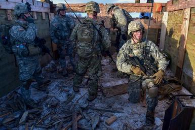 | Keywords: paratroopers; training; alaska; jber; joint base elmendorf-richa paratrooperstrainingalaskajberjointbaseelmendorfricha joint base elmendorf-richardson jointbaseelmendorfrichardson alaska usa paratroopers; training; alaska; jber; joint base elmendorf-richardson; live fire; u.s. army alaska; norcom; northern command; airborne paratrooperstrainingalaskajberjointbaseelmendorfrichardsonlivefireusarmyalaskanorcomnortherncommandairborne outdoor Army Staff Sgt. Jesse Parker, right, assigned to A Company, 6th Brigade Engineer Battalion (Airborne), 4th Infantry Brigade Combat Team (Airborne), 25th Infantry Division, U.S. Army Alaska, wait in a bunker assigned as a casualty collection point for an after-action review following live-fire and movement-to-contact operations on the Infantry Squad Battle Course at Joint Base Elmendorf-Richardson, Alaska, Nov. 8, 2016. The soldiers focused on core infantry skills such as fire team movement, communication, shifting fire, and once on the objective identifying and eliminating weapons caches and treating and evacuating casualties. (U.S. Air Force photo/Justin Connaher) Army Staff Sgt. Jesse Parker, right, assigned to A Company, 6th Brigade Engineer Battalion (Airborne), 4th Infantry Brigade Combat Team (Airborne), 25th Infantry Division, U.S. Army Alaska, wait in a bunker assigned as a casualty collection point for an after-action review following live-fire and movement-to-contact operations on the Infantry Squad Battle Course at Joint Base Elmendorf-Richardson, Alaska, Nov. 8, 2016. The soldiers focused on core infantry skills such as fire team movement, communication, shifting fire, and once on the objective identifying and eliminating weapons caches and treating and evacuating casualties. (U.S. Air Force photo/Justin Connaher) |