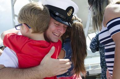 | Keywords: frank cable frankcable as40 deployment guam underway returning shift colors shiftcolors first line firstline manning the rails manningtherails dress whites dresswhites sailors sumarine tender sumarinetender alana langdon alanalangdon s40mc homecoming SANTA RITA, Guam (Nov. 8, 2016) Chief Petty Officer Justin Burke, a native of Edgewater, Md., assigned to the submarine tender USS Frank Cable (AS 40) embraces his family for the first time, after completing a five-month deployment. Frank Cable departed Guam June 6, was a persistent presence throughout the Indo-Asia-Pacific region during its deployment providing vital flexibility to the fleet commanders, extending the range and impact of U.S. naval forces in the U.S. Navy's 5th and 7th Fleets. Forward deployed to Guam, Frank Cable's combined Navy and Military Sealift Command crew's mission is to provide critical war fighting repairs, rearmament and reprovisioning to deployed Naval Forces of the United States. (U.S. Navy photo by Seaman Alana Langdon/Released) SANTA RITA, Guam (Nov. 8, 2016) Chief Petty Officer Justin Burke, a native of Edgewater, Md., assigned to the submarine tender USS Frank Cable (AS 40) embraces his family for the first time, after completing a five-month deployment. Frank Cable departed Guam June 6, was a persistent presence throughout the Indo-Asia-Pacific region during its deployment providing vital flexibility to the fleet commanders, extending the range and impact of U.S. naval forces in the U.S. Navy's 5th and 7th Fleets. Forward deployed to Guam, Frank Cable's combined Navy and Military Sealift Command crew's mission is to provide critical war fighting repairs, rearmament and reprovisioning to deployed Naval Forces of the United States. (U.S. Navy photo by Seaman Alana Langdon/Released) |