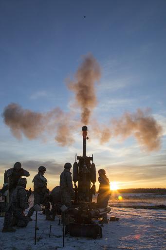 | Keywords: airborne parachute field artillery parachutefieldartillery live fire livefire alaska northern command northerncommand norcom 105 mm howitzer 105mmhowitzer joint base elmendorf-richardson jointbaseelmendorfrichardson united states unitedstates us outdoor sky Paratroopers assigned to A Battery, 2nd Battalion, 377th Parachute Field Artillery Regiment, 4th Infantry Brigade Combat Team (Airborne), 25th Infantry Division, U.S. Army Alaska, fire a 105 mm howitzer during airborne and live fire training at Joint Base Elmendorf-Richardson, Alaska, Nov. 22, 2016. Following a heavy equipment drop and parachute assault, the paratroopers honed their skills by setting up and firing a 105 mm howitzer. The Soldiers of 4/25 IBCT belong to the only American airborne brigade in the Pacific and are trained to execute airborne maneuvers in extreme cold weather/high altitude environments in support of combat, partnership and disaster relief operations. (U.S. Air Force photo/Alejandro Pena) Paratroopers assigned to A Battery, 2nd Battalion, 377th Parachute Field Artillery Regiment, 4th Infantry Brigade Combat Team (Airborne), 25th Infantry Division, U.S. Army Alaska, fire a 105 mm howitzer during airborne and live fire training at Joint Base Elmendorf-Richardson, Alaska, Nov. 22, 2016. Following a heavy equipment drop and parachute assault, the paratroopers honed their skills by setting up and firing a 105 mm howitzer. The Soldiers of 4/25 IBCT belong to the only American airborne brigade in the Pacific and are trained to execute airborne maneuvers in extreme cold weather/high altitude environments in support of combat, partnership and disaster relief operations. (U.S. Air Force photo/Alejandro Pena) |
