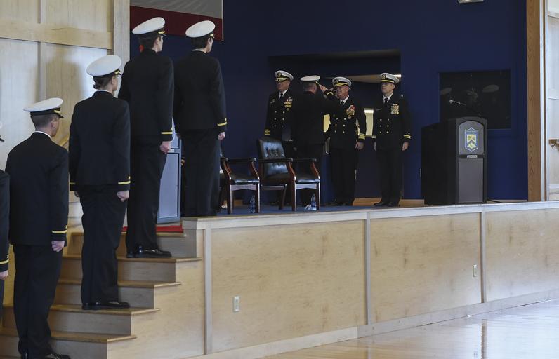 Keywords: 161202-N-RX668-131 161202-N-RX668-131.jpg en 161202-N-RX668-131 NEWPORT R I Dec 2 2016 Rear Adm Jeffrey A Harley president U S Naval War College salutes a graduate during an Officer Candidate School OCS graduation held at Kay Hall on board Naval Station Newport in Newport Rhode Island During his speech Harley said You now enter the Navy and will have a new-found power You have a responsibility for leading a responsibility for vast quantities of material and equipment and most importantly an unparalled responsibility for the lives of other people Eighty-three officer candidates participated in the ceremony The mission of OCS is to develop civilians enlisted and newly commissioned personnel morally mentally and physically and imbue them with the highest ideals of honor courage and commitment in order to prepare graduates for service in the fleet as Naval officers U S Navy photo by Petty Officer 2nd Class Jess Lewis/Released Unit Navy Media Content Services DVIDS Tags NMCS; DVIDS Bulk Import 2016-12-02 Petty Officer 2nd Class Jess Lewis https //www dvidshub net/image/3044811/161202-n-rx668-131 161202-N-RX668-131 2016-12-09 00 01 PD-USGov-Military-Navy Naval Station Newport Images from DoD uploaded by Fæ |