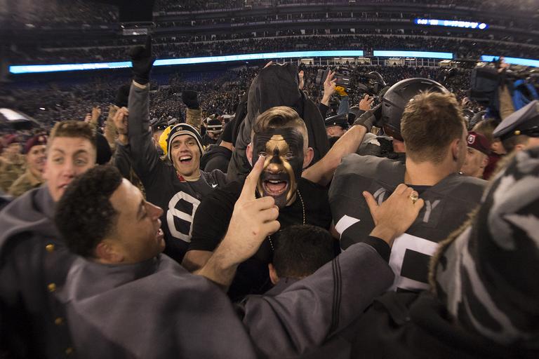| Keywords: army navy armynavy army football armyfootball athletics football sports crowd people Army West Point Football fans celebrate Army winning the 117th Army Navy Game presented by USAA at M&T Bank Stadium in Baltimore December 10, 2016. Army defeated the U.S. Naval Academy 21-17 snapping Navy’s 14-year win streak. (U.S. Army photo by: John Pellino) Army West Point Football fans celebrate Army winning the 117th Army Navy Game presented by USAA at M&T Bank Stadium in Baltimore December 10, 2016. Army defeated the U.S. Naval Academy 21-17 snapping Navy’s 14-year win streak. (U.S. Army photo by: John Pellino) |