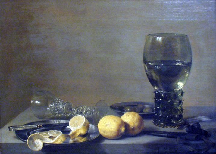 | Keywords: 1629 Claesz Stilleben anagoria.JPG Artwork Creator Pieter Claesz title Still Life with Two Lemons a Facon de Venise Glass Roemer Knife and Olives on a Table Stillleben mit zwei Zitronen einem Venezianer Glas Roemer Messer und Oliven auf einem Tisch 1629 painting Institution Metropolitan Museum of Art http //www metmuseum org/search-results ft Claesz cat Collection rpp 10 pg 1 metmuseum org own anagoria PD-old-100 DEFAULTSORT Claesz Still Life with Two Lemons a Facon de Venise Glass Roemer Knife and Olives on a Table Paintings by Pieter Claesz Dutch Golden Age paintings in the Metropolitan Museum of Art Baroque still life paintings of fruit Baroque still life paintings of glassware Baroque still life paintings of tableware Peeled lemons in art Still life paintings with pewter plates 17th-century still life paintings in the United States 17th-century still life paintings of lemons 1620s still life paintings 1629 paintings in the United States |