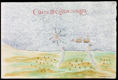 | Keywords: 1632 Cardona Descripcion Indias (121).jpg es Página 121 de las Descripciones geográphicas e hydrográphicas de muchas tierras y mares del Norte y Sur en las Indias en especial del descubrimiento del Reino de la California redactadas por el capitán Nicolás de Cardona tras su expedición de 1614 s of many northern and southern lands and seas in the Indies specifically the discovery of the kingdom of California written by captain Nicolás de Cardona after his expedition of 1614 1632-06-24 Descripciones geográficas e hidrográficas de muchas tierras y mares del Norte y Sur en las Indias en especial del descubrimiento del Reino de California hecho con trabajo e industria por el capitán y cabo Nicolás de Cardona dirigidas al Exmo D Gaspar de Guzmán Conde de Olivares http //bdh bne es/bnesearch/detalle/bdh0000011007 Biblioteca Digital Hispánica Biblioteca Nacional de España Nicolás de Cardona other versions PD-Art PD-old-100 ca 1632 Spain watermark Descripciones geográphicas e hydrográphicas de muchas tierras y mares del Norte y Sur en las Indias en especial del descubrimiento del Reino de la California Maps by Nicolás de Cardona Watercolor maps Maps in Spanish Pictorial maps 1632 maps Old manuscript maps Zihuatanejo de Azueta Old maps of Mexico |