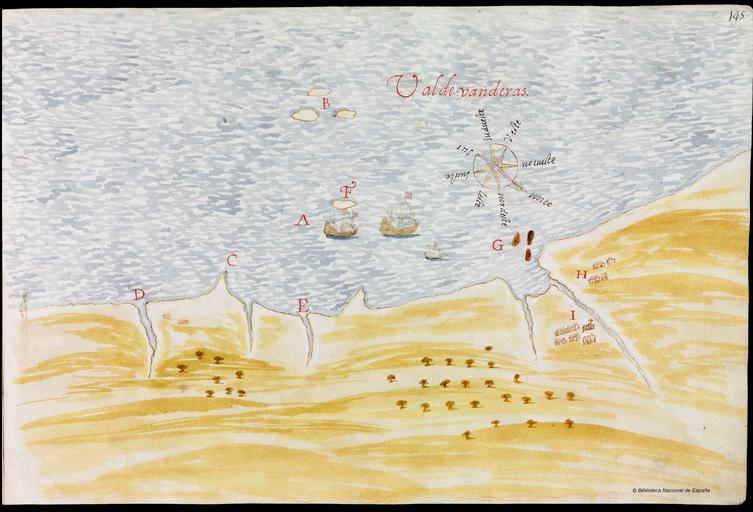 | Keywords: 1632 Cardona Descripcion Indias (145).jpg Bahía de Banderas México <br> Leyenda tomada de la página 144 <br> A Navíos de la pesquería <br> B Las islas de las Marías <br> C El cabo de Corrientes <br> D El río de Chacala <br> E El río del Valle <br> F La isla San Andrés <br> G Las islas de Mazatlan <br> H El Pueblo de los Mulatos <br> I La Villa de San Sebastián <br> Página 145 de las Descripciones geográphicas e hydrográphicas de muchas tierras y mares del Norte y Sur en las Indias en especial del descubrimiento del Reino de la California redactadas por el capitán Nicolás de Cardona tras su expedición de 1614 s of many northern and southern lands and seas in the Indies specifically the discovery of the kingdom of California written by captain Nicolás de Cardona after his expedition of 1614 1632-06-24 Descripciones geográficas e hidrográficas de muchas tierras y mares del Norte y Sur en las Indias en especial del descubrimiento del Reino de California hecho con trabajo e industria por el capitán y cabo Nicolás de Cardona dirigidas al Exmo D Gaspar de Guzmán Conde de Olivares http //bdh bne es/bnesearch/detalle/bdh0000011007 Biblioteca Digital Hispánica Biblioteca Nacional de España Nicolás de Cardona other versions PD-Art PD-old-100 ca 1632 Spain watermark Descripciones geográphicas e hydrográphicas de muchas tierras y mares del Norte y Sur en las Indias en especial del descubrimiento del Reino de la California Maps by Nicolás de Cardona Watercolor maps Maps in Spanish Pictorial maps 1632 maps Old manuscript maps Bahia de Banderas Nayarit Old maps of Mexico Chacala Nayarit |