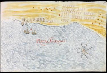 Keywords: 1632 Cardona Descripcion Indias (157).jpg Nicolás de Cardona que describe su desembarco en una playa de Baja California y la escaramuza que siguió con los indígenas que hostigaron a los españoles con flechas mientras estos contraatacaron soltando dos perros de combate Página 157 de las Descripciones geográphicas e hydrográphicas de muchas tierras y mares del Norte y Sur en las Indias en especial del descubrimiento del Reino de la California redactadas por el capitán Nicolás de Cardona tras su expedición de 1614 s of many northern and southern lands and seas in the Indies specifically the discovery of the kingdom of California written by captain Nicolás de Cardona after his expedition of 1614 1632-06-24 Descripciones geográficas e hidrográficas de muchas tierras y mares del Norte y Sur en las Indias en especial del descubrimiento del Reino de California hecho con trabajo e industria por el capitán y cabo Nicolás de Cardona dirigidas al Exmo D Gaspar de Guzmán Conde de Olivares http //bdh bne es/bnesearch/detalle/bdh0000011007 Biblioteca Digital Hispánica Biblioteca Nacional de España Nicolás de Cardona other versions PD-Art PD-old-100 ca 1632 Spain watermark Descripciones geográphicas e hydrográphicas de muchas tierras y mares del Norte y Sur en las Indias en especial del descubrimiento del Reino de la California Maps by Nicolás de Cardona Watercolor maps Maps in Spanish Pictorial maps 1632 maps Old manuscript maps Maps of battles of Spain Military working dogs Old maps of Mexico |