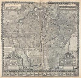 Keywords: 1652 Gomboust Map of Paris, France (c. 1900 Taride reissue) - Geographicus - ParisSm-gomboust-1900.jpg File 1652 Gomboust 9 Panel Map of Paris France c 1900 Taride reissue - Geographicus - Paris-gomboust-1900 jpg This is a reduction of a plan of Paris originally issued in 1652 by Jacques Gomboust Gomboust held the position of Ingenieur du Roi and in that capacity completed a number of important survey's of Paris which eventually evolved into this spectacular map Oriented to the east this map covers Paris from the Bastille to the Tuileries Garden and from St Lazare to the Pont de Fauxbourg de St Jacques This is the geometric delineation of Paris and offers numerous decorative elements including profile views of all significant Paris buildings Views of the city itself decorate the upper right and left quadrants The lower right and left quadrants feature dramatic neoclassical pedestals surmounted by baroque armorial crests The pedestals themselves contain views of fifteen important Parisian buildings A textual dedication to King Louis XIV appears to the left of the map On the right hand side of the map there are notes in French detailing the construction of the map Surrounded by a decorative vine motif border This map is a seminal cartographic masterpiece that bridges the gap between city plans as views and modern maps All previous map of Paris depicted the city in the form of elevated profile views - thus any looking at the map might recognize this or that building by is well known appearance from the ground While Gomboust retains this feature with regard to Paris' most important structures for the most part he creates a modern map displaying the city as it would appear from directly above At the time this was a very impractical way to depict Paris for the average person would be incapable of interpreting such a presentation In viewing such a map some scholars argue the typical Parisian embraces the King's View of the city and thus embraces his authority This is the c 1900 Taride reissue The original 1652 plan is today unobtainable 1652 original publication c 1900 reissue Size in 19 18 5 object history credit line accession number ParisSm-gomboust-1900 Taride A <i>Plan Monumental de Paris au XVII Siecle</i> 1900 Geographicus-source <gallery> File 1652 Gomboust 9 Panel Map of Paris France c 1900 Taride reissue - Geographicus - Paris-gomboust-1900 jpg <center>higher res 9-panel version</center> </gallery> PD-Art-100 Maps by Jacques Gomboust 1652 maps Paris 1900 maps Paris Maps of Paris in the 17th century 1652 17th-century maps of Paris 1652 Maps in French Paris Paris in the 1650s |