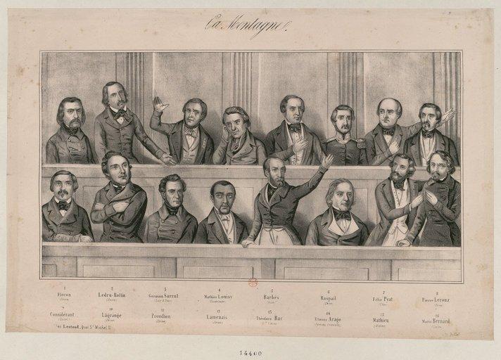 Keywords: 16 Représentants à leurs bancs de l'Assemblée constituante, 1848.jpeg fr Buffet Lithographe - Portrait collectif de 16 Représentants à leurs bancs de l'Assemblée sur 2 rangs Estampe in revue La Montagne Léotaud Éditeur quai Saint-Michel 11 2013-02-13 12 56 23 http //gallica bnf fr/ark /12148/btv1b530153386/f1 item Bnf Gallica La Montagne PD-old Uploaded with UploadWizard Victor Considerant Charles Lagrange Germain Sarrut Félicité Robert de Lamennais Théodore Bac Étienne Arago Mathieu de la Drôme Martin Bernard Ferdinand Flocon Alexandre Auguste Ledru-Rollin Pierre-Joseph Proudhon Louisy Mathieu Armand Barbès François-Vincent Raspail Félix Pyat Pierre Leroux National Constituent Assembly French Second Republic ImageNote 1 63 238 56 61 712 512 2 Ferdinand Flocon ImageNoteEnd 1 ImageNote 2 77 133 50 65 712 512 2 Victor Considerant ImageNoteEnd 2 ImageNote 3 253 133 47 56 712 512 2 Germain Sarrut ImageNoteEnd 3 ImageNote 4 137 113 56 59 712 512 2 Charles Lagrange ImageNoteEnd 4 ImageNote 5 136 205 66 85 712 512 2 Alexandre Auguste Ledru-Rollin ImageNoteEnd 5 ImageNote 6 310 147 54 61 712 512 2 Félicité Robert de Lamennais ImageNoteEnd 6 ImageNote 7 364 217 58 71 712 512 2 Armand Barbès ImageNoteEnd 7 ImageNote 8 292 254 51 64 712 512 2 Louisy Mathieu ImageNoteEnd 8 ImageNote 9 454 250 59 60 712 512 2 François-Vincent Raspail ImageNoteEnd 9 ImageNote 10 391 129 52 65 712 512 2 Théodore Bac ImageNoteEnd 10 ImageNote 11 219 242 54 77 712 512 2 Pierre-Joseph Proudhon ImageNoteEnd 11 ImageNote 12 548 214 46 59 712 512 2 Félix Pyat ImageNoteEnd 12 ImageNote 13 598 207 56 65 712 512 2 Pierre Leroux ImageNoteEnd 13 ImageNote 14 465 141 49 72 712 512 2 Étienne Arago ImageNoteEnd 14 ImageNote 15 591 140 42 61 712 512 2 Martin Bernard ImageNoteEnd 15 ImageNote 16 529 133 49 65 712 512 2 Mathieu de la Drôme ImageNoteEnd 16 |