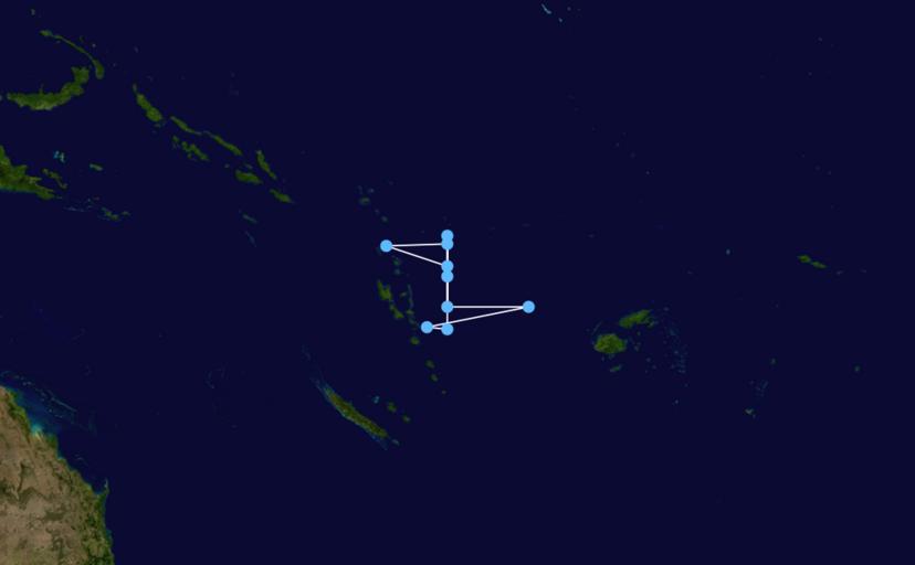 | Keywords: 16F 2002 track.png Track map of Tropical Depression 16F of the 2001 “02 South Pacific cyclone season The points show the location of the storm at 6-hour intervals The colour represents the storm's maximum sustained wind speeds as classified in the Saffir-Simpson Hurricane Scale see below and the shape of the data points represent the nature of the storm according to the legend below User Nilfanion/Tc/T Created using Wikipedia WikiProject Tropical cyclones/Tracks The background image is from NASA Tracking data from the Meteorological Service of New Zealand Limited 's best track <sup>ftp //eclipse ncdc noaa gov/pub/ibtracs/original-bt-data-files/wellington/TC_BT_1967_2006 xls</sup> 2010-12-12 Cyclonebiskit 2001-02 South Pacific cyclone season track maps |