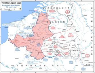 Keywords: 16May-21May1940-Fall Gelb de.svg de Militärische Situation während des Westfeldzuges zwischen dem 16 und 21 Mai 1940 en Military situation during the Western Campain between 16th and 21st May 1940 Original source http //www dean usma edu/history/web03/atlases/ww2 20europe jpg file File 1940FranceBlitz jpg derived English svg file File 16May-21May1940-Fall Gelb svg some additional data http //www atf40 fr/ATF40/ Armée de Terre Française 1940 Original source The History Dept at the United States Army Academy<br> derived English svg file Tazadeperla modified by Addihockey10 and Zscout370<br> this work Furfur with some minor corrections and modifications 2013-11-18 <gallery>File 10May-16May1940-Fall Gelb de svg <center>10 -16 Mai</center></gallery> Maps of Fall Gelb SVG maps showing history in German PD-USGov |