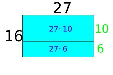 Keywords: 16x27 Illustration with different areas 2.svg en 16x27 Illustration with different areas step 1 A few different images to illustrate how 16 27 equals 16 20+16 7 or 10 27+6 27 or 10 20+10 7+6 20+6 7 2012-06-10 own Other fields T + cc-zero SVG calculus examples Multiplication Uploaded with UploadWizard SVG files by Averater |