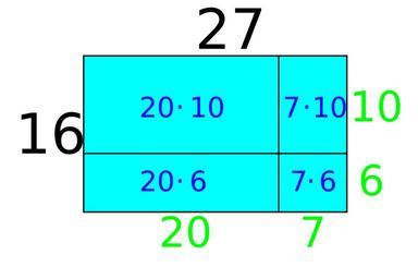 Keywords: 16x27 Illustration with different areas 4.svg en 16x27 Illustration with different areas step 1 A few different images to illustrate how 16 27 equals 16 20+16 7 or 10 27+6 27 or 10 20+10 7+6 20+6 7 2012-06-10 own Other fields T + cc-zero SVG calculus examples Multiplication Uploaded with UploadWizard SVG files by Averater |