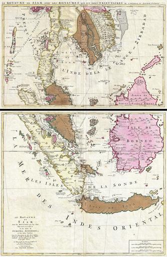 | Keywords: 1710 Ottens Map of Southeast Asia, Singapore, Thailand (Siam), Malaysia, Sumatra, Borneo - Geographicus - Siam-ottens-1710.jpg A fine example of Joachim Ottens ™ magnificent two part c 1710 map of the Kingdom of Siam and its tributaries Covers much of Southeast Asia and the East Indies including modern day Thailand southern Vietnam Cambodia Malaysia Singapore Borneo Sumatra and Java This remarkable map was one of the largest and most detailed maps of this region to appear in the early 18th century It was drawn by Joachim Ottens shortly before his death and was published by his sons and later republished as a single sheet map by Covens and Mortier The upper map focuses on the territories currently occupied by modern day Thailand Cambodia Vietnam northern Borneo and northern Malaysia Offers wonderful detail the Andaman Islands the Gulf of Thailand Golfe de Siam and coastal Vietnam Also has good detail along the navigable inland river systems particularly the Mekong and the Chao Phraya In the Kingdom of Siam this map shows the fortress of Bangkok the ancient Siamese capital of Ayutthaya royal palace and the Dutch trading colony In Cambodia it details the village of Ponompingn Phnom Penh Lewek on Camboia and the Dutch trading mission In the seas this map offers numerous depth soundings and shows the trade routes between Batavia Jakarta Java and Siam Thailand Also details the shoals and reefs off the coast of modern day Vietnam Mountain regions are shown pictorially Title in French across the top of the map outside the neatline The bottom map details the southern parts of the Malay Peninsula Sumatra Borneo and Java focusing on the Straits of Singapore Cingapura Does not specifically name the Island of Singapore but does show the island that would fatefully be settled in 1819 by Sir Thomas Stamford Raffles Offers superb detail along the coasts naming numerous forts trade missions settlements and islands Shows the trade routes between Siam and Batavia and illustrates some of the hazards of the Straits of Cingapura Singapore Offers numerous depth soundings along the western coast of Borneo the northern coast of Java and western Sumatra Mountain regions are shown pictorially Title in French occupies the lower left quadrant circa 1710 undated Size in 22 33 object history credit line accession number Siam-ottens-1710 This map set would have been compiled into one of the Ottens' made-to-order atlases such as the magnificient <i>Atlas Major</i> Geographicus-source PD-Art-100 <gallery> File Northern Borneo 1710 Ottens Map of Southeast Asia Singapore Thailand Siam Malaysia Sumatra Borneo - Geographicus - Siam-ottens-1710 jpg </gallery> 1710 maps Old maps of Southeast Asia Asia in the 18th century Burma in the 18th century Indonesia in the 18th century Thailand in the 18th century Covens en Mortier Maps in French French language maps of Asia Ottens family |