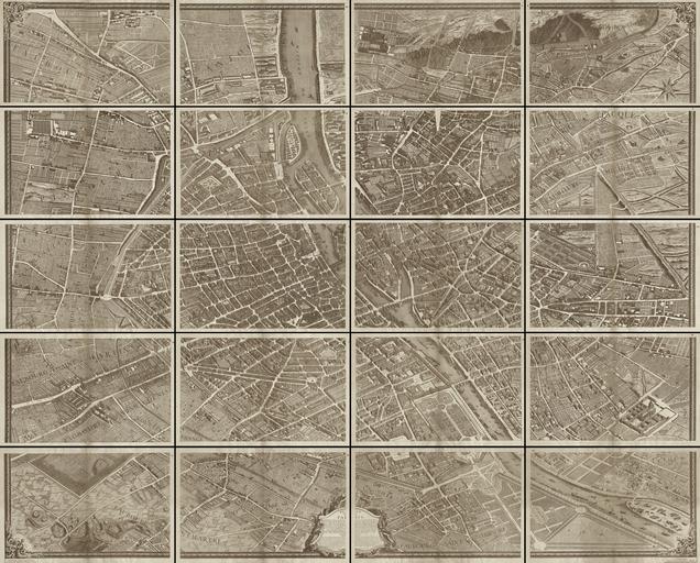 | Keywords: 1739 Bretez - Turgot View and Map of Paris, France.jpg LargeImage This is the c 1900 Taride edition of Louis Bretez and Michel-Etienne Turgot's monumental 1739 map of Paris Turgot's map of Paris is possibly the most ambitious urban mapping ever undertaken Shows the whole of 18th century Paris and offers a wonderful perspective on the city prior to Baron Georges Eugène Haussmann ™s 19th-century redesign Turgot who held the mayor-like office of PrĂ©vĂ´t des Marchands de Paris commissioned Louis Bretez and Claude Lucas to produce this map in 1734 Oriented to the east on an axonometrical projection this map is best understood as an aerial view where in every building window tree shadow and park is shown It took the team nearly five years of exhaustive sketching and surveying to assemble this masterpiece In order to produce the thousands of sketches and surveys required to complete this map Bretez was issued a permit to enter every building in Paris The completed map which consists of twenty individual sheets can be assembled into a massive and striking display roughly 8 feet by 10 feet Twenty-one loose sheets embraced in a marbled folio this is Alphonse Taride's c 1900 issue of Bretez's Plan de Paris 1739 original / c 1900 Taride Issue Size in 106 86 object history credit line accession number Paris-turgot-1909 Geographicus-source Retouched picture some dust spots removed levels adjusted 1739 Bretez - Turgot View and Map of Paris France c 1900 Taride issue - Geographicus - Paris-turgot-1909 jpg PD-art-100 Plan de Turgot 1739 maps Louis Bretez Maps in French |