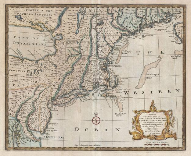 Keywords: 1747 Bowen Map of New Jersey, Pennsylvania, New York and New England - Geographicus - NewYorkNewEngland-bowen-1747.jpg A scarce and remarkable 1749 map of the New Jersey New York Pennsylvania Maine New Hampshire and Connecticut by Emmanuel Bowen Covering from the Chesapeake Bay to Lake Champlain and from Lake Ontario to Nova Scotia this remarkable map is an excellent example of both the success and failures of 18th century English mapping in the American colonies It also makes evident the challenges of the European map publisher in piecing together numerous disparate reports and mappings into a single cohesive cartographic entity In this example the contrast is most strikingly elucidated in Bowen's relatively accurate mapping of the coast lines in contrast to the extraordinary vagueness of the interior A simple overlay with a modern map reveals that while Bowen's longitudinal cartography along the coastline is slightly off from Cape Cod westward his latitudinal reference points are dead on Heading inland from the Atlantic this precision quickly evaporates Lake Ontario is proportionally massive and situated several hundred miles too far east Despite Bowen's considerable errors in proportion and positioning the Lake Ontario shoreline is surprisingly accurate in form and detailed down to the Finger Lakes extending south from the main body Politically Bowen offers some interesting detail regarding the early boundary lines of the colonies New Jersey in divided into the provinces of East and West Jersey The Pennsylvania is defined as the undeveloped lands to the west of the Susquehanna River The lands to the East of the Susquehanna River as far as the Delaware River are assigned to the Philadelphia Company The inland borders between the Massachusetts Bay Colony Connecticut and New York are indistinct Canada extends south to the Pennsylvania border Bowen identifies the important Cod fishing Shoals off New Hampshire Cape Cod and Nantucket He also adds number of notations regarding the events that occurred near around 1746 Albany New York during King Georges War third of the four French and Indian Wars Published for inclusion as plate no 62 in Bowen's 1747 edition of A Complete System of Geography 1747 undated Size in 17 14 object history credit line accession number of all the countries islands cities chief towns harbours lakes and rivers mountains mines c of the known world ¦</i> 1747 edition Geographicus-source PD-Art-100 Maps in English Old maps of New Jersey Old maps of New York Old maps of New Hampshire Old maps of Connecticut Maps by Emanuel Bowen 1747 maps |