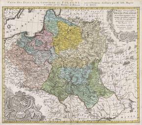 Keywords: 1750 Homann Heirs Map of Poland - Geographicus - Poloniae-homannheirs-1750.jpg This is one of the Homann Heirs finest and most appealing maps of Poland Depicts the Poland extending north as far as Latvia Lithuania and the Lithuanian Sea and south as far as the Carpathian Mountains Moldova and Transylvania Features two elaborate decorative cartouches one in the upper right quadrant decorated with a Polish coin and another in the lower left quadrant bearing the Polish armorial emblems Additional French title outside top border Carte des Etats de la Couronne de Pologne nouvellement dessinee par Mr Tob Mayer This map was drawn by Tob Mayer for inclusion the 1752 Homann Heirs Maior Atlas Scholasticus ex Triginta Sex Generalibus et Specialibus ¦ Most early Homann atlases were made to order or compiled of individual maps at the request of the buyer However this rare atlas composed of 37 maps and charts was issued as a suggested collection of essential Homann Heirs maps A fine copy of an important map 1750 Size in 21 18 object history credit line accession number Poloniae-homannheirs-1750 Geographicus-source PD-Art-100 Maps by Homannsche Erben Old maps of Poland 1750 maps |