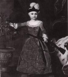 Keywords: 1754 Georg.JPG Georg Karl von Hessen-Darmstadt de 1754 “1830 c 1754 Oil on canvas Institution Schlossmuseum Darmstadt accession number object history credit line http //www royaltyguide nl/images-families/hessen/hessendarmstadt2/1754 20Georg JPG first uploaded to de wikipedia by de User Thyra <gallery>Schlossmuseum DA 03 jpg</gallery> PD-old-100 DEFAULTSORT 1754c; Georg Karl von Hessen-Darmstadt Johann Christian Fiedler Schlossmuseum Darmstadt Georg Karl von Hessen-Darmstadt 1754 oil on canvas paintings Portrait 1754 portrait paintings from Germany Male 18th-century oil portraits of boys at full length 18th-century portrait paintings in Germany Black and white reproductions of portrait paintings in color Children with fur in art Columns in portrait paintings Drapery in portrait paintings Ermine clothing in art Painting frames Paintings by Johann Christian Fiedler with fur Paintings of boys' dresses Portrait paintings of standing boys Portraits with firearms |
