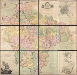 | Keywords: 1765 Benjamin Donn Wall Map of Devonshire and Exeter, England - Geographicus - Devon-donn-1765.jpg LargeImage This is a very rare and highly important 1765 wall map of Devonshire by Benjamin Donn Drawn in twelve panels this map covers the entirety of Devonshire or Devon from the English Channel to Barnstaple Bideford Bay and from Cornwall to Somerset at a scale of 1 inch to 1 mile Donn also incorporates large insets of Exeter showing the college Plymouth Plymouth Dock Stoke Town and the Isle of Lundy An elaborate decorative title cartouche with various allegorical elements appears in the lower left quadrant In 1759 the Society for the Encouragement of the Arts Manufacturers and Commerce since 1847 known as the Royal Society for the Arts following the suggestion of the Cornish antiquarian William Borlase offered a £100 award for a large scale one inch to the mile map of any English county Benjamin Donn the first to step up to the Borlase ™s challenge began work on his map of Devon in 1760 Five years later Donn ™s extraordinary project reached completion The Society was awed by the magnitude and detail of Donn ™s accurate actual survey and promptly awarded him the £100 Though the actual work of completing the survey and print the map cost Donn by his own estimation nearly £2000 the prestige of issuing the first large scale British county map earned him both robust subsequent sales and the admiration of his peers Donn ™s vast map of Devon and Exeter offers a wealth of detail and stands up to extensive study As the first significant large scale British county map this remarkable chart introduces a number of cartographic conventions that would become standardized in subsequent county and regional maps These include Donn ™s techniques for rendering turnpike roads versus fenced roads versus open roads as well as his innovative iconography relating the identification of farms cottages churches villages and estates In addition to the inclusion of typical cartographic features it also includes such oddities as country inns pleasure houses lime kilns the birthplace of Sr Walter Raleigh potato markets ancient roman ruins druidic ruins subterranean passages mileage elevation and some 656 gentleman ™s seats This map was drawn and surveyed by Benjamin Donn and printed by Thomas Jeffreys in twelve separate but joinable panels Donn dedicated his map to John Baring of Mount-Radford and Matthew Lee of Ebford local notables who may have helped Donn finance his survey work This is a highly decorative and unusual example of this particular map Most examples of this map appear bound in book format with large centerfolds and outline or no color This unusual example must have been prepared at a special request and is the only full original color example we have seen It is recorded that Donn charged 2 extra shillings for binding and 5 extra for coloring and an additional unknown premium for exceptionally fine full coloring Further this example has clearly never been bound or folded and each panel is neatly backed with linen It is our belief that this is special order variant of the first edition and as such is a unique find Presents dramatically spaced in a single large frame or in a sequence of narrowly set individual frames 1765 dated Size in 76 73 object history credit line accession number Devon-donn-1765 Geographicus-source PD-Art-100 Image extracted File Plan of the City and Suburbs of Exeter 1765 jpg File Plan of the Town and Citadel of Plymouth Benjamin Donn 1765 jpg File Plan of Stoke Town and Plymouth Dock - Benjamin Donn 1765 jpg 1765 maps Benjamin Donn Old county maps of Devon |