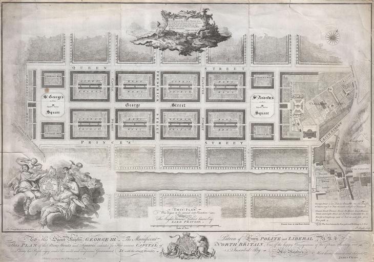 | Keywords: 1768 James Craig Map of New Town, Edinburgh, Scotland (First Plan of New Town) - Geographicus - Edinburgh-craig-1768.jpg Drafted for the city planning committee in 1768 by James Craig this is the definitive plan of Edinburgh Scotland ™s New Town Oriented to the North this plan details the streets of Edinburgh north of the Loch Nor today the Prince ™s Street Gardens between St George ™s Square modern day Charlotte Square and St Andrews Square A dedication to King George the III illustrates the lower part of the map An elaborate title cartouche decorates the lower left hand quadrant Thompson ™s poem appears in a secondary cartouche at the top center In 1766 the City Fathers of Edinburgh lead by Lord Provost George Drummond instituted a plan to extend the city ™s border to encompass the field ™s north of the Nor Loch The plan intended to modernize the city and ease the crowded conditions of the old Royal Burgh was turned into a competition James Craig an Edinburgh native having around this time just completed his apprenticeship as a mason found the he had a fine hand for drafting Inspired by his uncle James Thomson ™s well known poem Liberty August around what Public Works I see Lo ™ stately Streets lo ™ Squares that Court the breeze See ™ long Canals and deepened Rivers join Eash part with each and with the circling Main The whole enlivened Isle ¦ Craig submitted this plan Though conservative in its vision Craig ™s plan won the city ™s design contest and he was awarded with the Freedom of the City in 1767 Sadly the Lord Provost George Drummond who instituted the contest died before his dream of expanding the city was realized It was left to his successor the Lord Provost Gilbert Laurie who is named on this map to realize Craig ™s plan Today the streets are laid out much as Craig envisioned them with broad east “west avenues separating housing blocks bisected by smaller mews Drawn by James Craig and engraved by P Begbie in 1768 When this plan was printed in 1768 only 500 were issued With such a small printing run as an independently issued map we can safely assume that very few examples other than the one you see here have survived to this day Only one recorded example of this map has appeared at auction in the last 30 years Dated and copyrighted Published according to Act of Parliament Jan 1st 1768 1768 dated Size in 26 18 object history credit line accession number Edinburgh-craig-1768 Geographicus-source PD-Art-100 1768 maps Old maps of Edinburgh Maps in English New Town of Edinburgh James Craig architect |