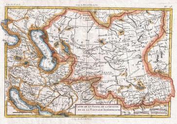 | Keywords: 1780 Raynal and Bonne Map of Central Asia - Geographicus - Georgie-bonne-1780.jpg A fine example of Rigobert Bonne and Guilleme Raynal ™s 1780 map of Central Asia Focuses on the region once known as Tartarie Indépendante or Independent Tartary This name was given to the great tract of land by Europeans in the middle ages and included the land from the Caspian Sea and the Ural Mountains to China and India This area was originally inhabited by Turkic and Mongol peoples of the Mongol Empire who were generically referred to as Tartars This area includes the modern day countries of Uzbekistan Kazakhstan Turkmenistan and parts of Afghanistan Pakistan Iran Tibet and China Also includes the adjacent Caucases located between the Black Sea and Caspian Sea Drawn by R Bonne for G Raynal ™s Atlas de Toutes les Parties Connues du Globe Terrestre Dressé pour l'Histoire Philosophique et Politique des Établissemens et du Commerce des Européens dans les Deux Indes 1780 undated Size in 13 9 object history credit line accession number Georgie-bonne-1780 Raynal G <i>Atlas de Toutes les Parties Connues du Globe Terrestre Dressé pour l'Histoire Philosophique et Politique des Établissemens et du Commerce des Européens dans les Deux Indes</i> 1780 Geographicus-source PD-old-100 Old maps of Asia 1780 maps |