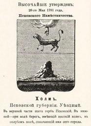 | Keywords: Холм 1781 из Винклера.jpg Official Russian Empire coat of arms Holm Гласный ге б Российской Импе ии уездного го ода Холм Псковской губе нии с официальным описанием в Ге бовнике Винкле а П П фон-Винкле Ге бы го одов губе ний областей и посадов Российской Импе ии внесенные в Полное Соб ание законов с 1649 по 1900 год Дозволено цензу ою С -Пете бу г 20 Июля 1899 года Издание книгото говца Ив Ив Иванова С -Пете бу г Типог афия И Комелова П яжка д 3 1899 \ Scanned 1781 \ 1899 published П П фон Винкле \ Pavel von Vinkler PD-old PD-RusEmpire PD-RU-exempt coats of arms Gerbovnik Vinklera - City CoAs Coats of arms of Pskov Governorate Hills in heraldry Russian canting arms |