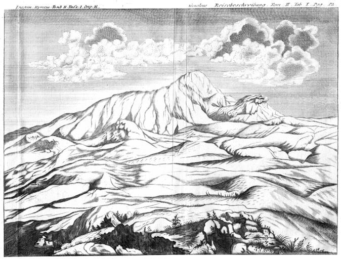 Keywords: 1783-GmelinSG-Bogdo.jpg ru Го а Большое Богдо исунок 1769-1770 года Опубликовано в 1783 г Гмелин Самуйл Гео г Путешествие по России для исследования т ех ца ств п и оды Пе евод с немецкого Часть 2 С начала августа 1769 по 5 июля 1770 года кото ое в емя заключает путешествие от Че каска до Аст ахани и п ебывание в сем го оде СПб Импе ато ская Академия наук 1783 Таб 1 1783-01-02 Russian Travel 1783 Samuil Georg Gmelin other versions PD-old-70-1923 Mount Bolshoye Bogdo Samuel Gottlieb Gmelin