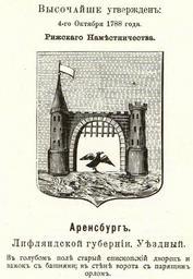 | Keywords: Аренсбург 1788 из Винклера.jpg Official Russian Empire coat of arms Arensburg Ге б Российской Импе ии уездного го ода А енсбу г Лифляндской губе нии в 1788 - Рижского наместничества с официальным описанием в Ге бовнике Винкле а П П фон-Винкле Ге бы го одов губе ний областей и посадов Российской Импе ии внесенные в Полное Соб ание законов с 1649 по 1900 год Дозволено цензу ою С -Пете бу г 20 Июля 1899 года Издание книгото говца Ив Ив Иванова С -Пете бу г Типог афия И Комелова П яжка д 3 1899 \ Scanned 1788 \ 1899 published П П фон Винкле \ Pavel von Vinkler PD-old PD-RusEmpire PD-RU-exempt coats of arms Gerbovnik Vinklera - City CoAs Coats of arms of Liflandia Governorate Castles in heraldry Kreis Ösel |