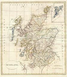 Keywords: 1799 Clement Cruttwell Map of Scotland - Geographicus - Scotland-cruttwell-1799.jpg A fine 1799 map of Scotland by the English map publisher Clement Cruttwell Covers the entire region in great detail including a detailed inset of the Shetland Isles Here all the counties are labeled as Shires as the word county did not become common usage in Scotland until the nineteenth century In the north are Caithness Sutherland Ross Murray Aberdeen and Bamff Shires With the exception of the merger of Ross Shire and Cromarty Shire these counties are still in existence today In central Scotland are the Inverness Shire Kincardine Shire Angus Shire Argyle Shire Fife Shire and Perth Shire Further south are the Shires of Renfew Dumbarton Edinburgh Haddington Berwick Lanerk Air Kirkudbright Dumfries Selkirk and Roxburgh Lewis Island in the North is attached to Rofs Shire South of Lewis Island is North and South Uist Island and Coll Island which retained baronial fief by the Macleans of Coll until 1848 In the northeast are the Shetland Islands which did not officially become a part of Scotland until a Scottish Act of Parliament in 1669 The map is highly detailed including many roads river ways ports towns and shoals Outline color and fine copper plate engraving in the minimalist English style prevalent in the late 18th and early 19th centuries Mountains and other topographical detail shown by profile Drawn by G G and J Robinson of Paternoster Row London for Clement Cruttwell's 1799 Atlas to Cruttwell's Gazetteer 1799 dated size in 14 16 object history credit line accession number Scotland-cruttwell-1799 Cruttwell C <i>Atlas to Cruttwell's Gazetteer</i> 1799 Geographicus-source PD-Art-100 Old maps of Scotland 1799 maps Maps by Clement Cruttwell English language maps of Europe |