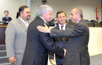 Keywords: Presidente do Legislativo, deputado Valdir Rossoni (PSDB), cumprimenta os representantes da Agência de Desenvolvimento e Recursos Assistenciais (ADRA). Foto: Sandro Nascimento/Alep (crédito obrigatório) adra paulolopes valdirrossoni artagãojunior |