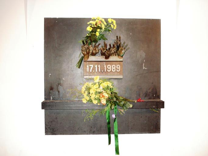 | Keywords: 17listopadu89 pomnik.JPG Monument to the student manifestations of November 17th in Prague repressed by the police they led to the fall of communism in Czechoslovakia Mémorial aux manifestations estudiantines du 17 novembre 1989 réprimées par la police elles conduisirent a la chute du communisme en Tchécoslovaquie Pomnik 17ého listopadu 1989 Own 2006 Rémi Diligent Velvet Revolution monument at Národní street | ||||