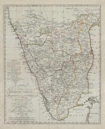 Keywords: 1804 German Edition of the Rennel Map of India - Geographicus - IndiaGerman-rennell-1804.jpg An extremely obscure German edition of Rennell's important late 18th century mapping of India Covers the subcontinent roughly from Hyderabad and Goa south to Comorin and Ceylon Sri Lanka Shows the region divided into various princely states noting important forts rivers cities towns and roadways This map is very scarce We have been able to find no sales history on this item in the last 30 years nor is known to be it available in any major collection 1804 dated Size in 15 19 object history credit line accession number IndiaGerman-rennell-1804 Geographicus-source PD-Art-100 <gallery> File 1800 Faden Rennell Wall Map of India - Geographicus - India-faden-1795 jpg 1800 original map by James rennell File 1838 Wyld Wall Map of India Hindostan or British India - Geographicus - India-wyld-1838 jpg 1838 Wyld derivative map of India </gallery> Old maps of South India 1804 maps of India Maps in German James Rennell