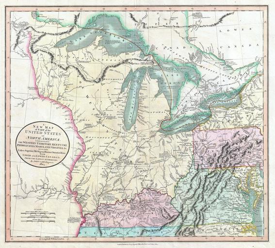 Keywords: 1805 Cary Map of the Great Lakes and Western Territory (Kentucy, Virginia, Ohio, etc..) - Geographicus - WesternTerritory-cary-1805.jpg Published by John Cary in 1805 this is one of the most interesting and attractive maps of the American Frontier and the Great Lakes to emerge in the first years of the 19th century Covers from Lakes Superior south along the Mississippi River as far as Kentucky and Tennessee Extends eastward to include the Western Territory Virginia Pennsylvania Ontario and parts of New York North Carolina and Maryland This wonderful map was produced during a period of rapid westward expansion toward the Mississippi River and attempts address a general fascination with this largely unexplored territory One of this map ™s most compelling features is the massive Western Territory encompassing all of modern day Ohio Indiana Michigan Wisconsin Illinois and parts of Minnesota Offers copious notations and comments throughout most of which are extremely interesting A note in Kentucky for example referencing the frontiersman Daniel Boon reads Kentucky this Colony was first discovered by J Macbride others in the Year 1754 Col D Boon explored it in 1769 with his family five other began the first settlement in 1773 Also indicates the Indian Boundary Line through modern day Ohio and Indiana under the 1795 treaty of General Wayne Notes the Illinois Company ™s claims near St Louis Offers considerable commentary on various portages rapids waterfalls and other obstacles to river navigation Shows the locations of various American Indian tribes the Buffalo Plains fishing grounds hunting territory and explorer ™s routes This is also one of the last maps to show the mythical Ile Philippeaux in Lake Superior All-in-all a fascinating map of American at the first stages of the westward expansion and an important piece for most American post-Revolutionary period map collections Prepared in 1805 by John Cary for issue in his magnificent 1808 New Universal Atlas 1805 dated Size in 20 75 18 5 object history credit line accession number WesternTerritory-cary-1805 Cary John <i>Cary's New Universal Atlas containing distinct maps of all the principal states and kingdoms throughout the World From the latest and best authorities extant </i> London Printed for J Cary Engraver and Map-seller No 181 near Norfolk Street Strand 1808 Geographicus-source PD-old-100 1805 maps Maps by John Cary Old maps of the United States Old maps of the Great Lakes 1805 in Michigan Maps in English |