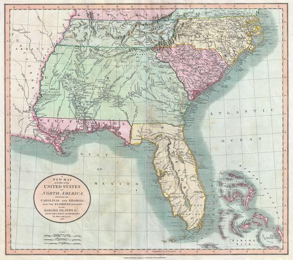 Keywords: 1806 Cary Map of Florida, Georgia, North Carolina, South Carolina and Tennessee - Geographicus - NCSCGAFL-cary-1806.jpg Published by John Cary in 1805 this is one of the most interesting and attractive maps of the American southeast to appear in the first years of the 19th century Covers from Kentucky and Virginia South include all of modern day North Carolina South Carolina Tennessee Georgia Alabama Mississippi and Florida Georgia is shown extending westward as far as the Mississippi River despite the creation of the Mississippi Territory in 1798 Florida is divided at the Appalachicola River into eastern and western sections West Florida ostensibly part of the Louisiana Purchase was claimed by the Spanish and remained under their control until 1812 Southern Florida is labeled Ancient Tegesta according to the 18th century convention Tegesta is a name of somewhat mysterious origins that appears on maps of Florida as early as the 1600s It most likely refers to a vanished American Indian tribe or abandoned village located near what is today Miami Offers copious notations and comments throughout most of which are extremely interesting Identifies the locations of numerous American Indian nations including the Creeks the Chicksaw Nation the Cherokees and others Notes the abandoned Applachee Villages in northern Florida Also offers notes on American Indian hunting grounds springs river navigation roads swamps forts and the sites of important battles All-in-all a wonderful example of a rare and important map of the American southeast Prepared in 1806 by John Cary for issue in his magnificent 1808 New Universal Atlas 1806 dated Size in 20 5 18 5 object history credit line accession number NCSCGAFL-cary-1806 Cary John <i>Cary's New Universal Atlas containing distinct maps of all the principal states and kingdoms throughout the World From the latest and best authorities extant </i> London Printed for J Cary Engraver and Map-seller No 181 near Norfolk Street Strand 1808 Geographicus-source PD-old-100 Maps by John Cary 1806 maps Old maps of Florida Old maps of Georgia U S state Old maps of North Carolina Old maps of South Carolina Old maps of Tennessee Maps of West Florida |