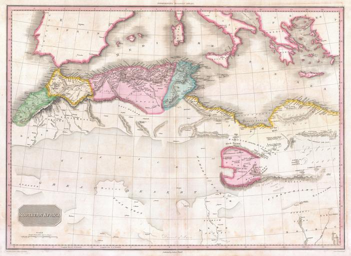Keywords: 1818 Pinkerton Map of Northern Africa and the Mediterranean - Geographicus - NorthernAfrica-pinkerton-1818.jpg This fascinating hand colored 1818 map by Edinburgh cartographer John Pinkerton depicts northern Africa Covers from Morocco to Siwa Siwah Oasis in the Libyan Desert Focuses Morocco and the Mediterranean regions of Fez Algeria Tunisia and Tripoli Also shows the Kingdom of Fezzan Though mostly desert Fezzan has numerous oaises and supported a relatively large population This desert kingdom was a critical stopping point for trade caravans crossing the Sahara since antiquity Drawn by L Herbert and engraved by Samuel Neele under the direction of John Pinkerton This map comes from the scarce American edition of Pinkerton ™s Modern Atlas published by Thomas Dobson Co of Philadelphia in 1818 1818 undated Size in 28 20 5 object history credit line accession number NorthernAfrica-pinkerton-1818 Pinkerton J <i>A Modern Atlas from the Lates and Best Authorities Exhibiting the Various Divisions of the World with its chief Empires Kingdoms and States; in Sixty Maps carefully reduced from the Larges and Most Authentic Sources </i> 1818 Philadelphia Thomas Dobson Edition Geographicus-source PD-old-100 Maps by John Pinkerton Old maps of Africa 1818 maps |